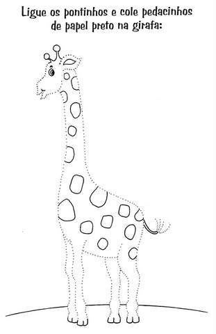 * Ligue os pontinhos e cole pedacinhos de papel preto na girafa.