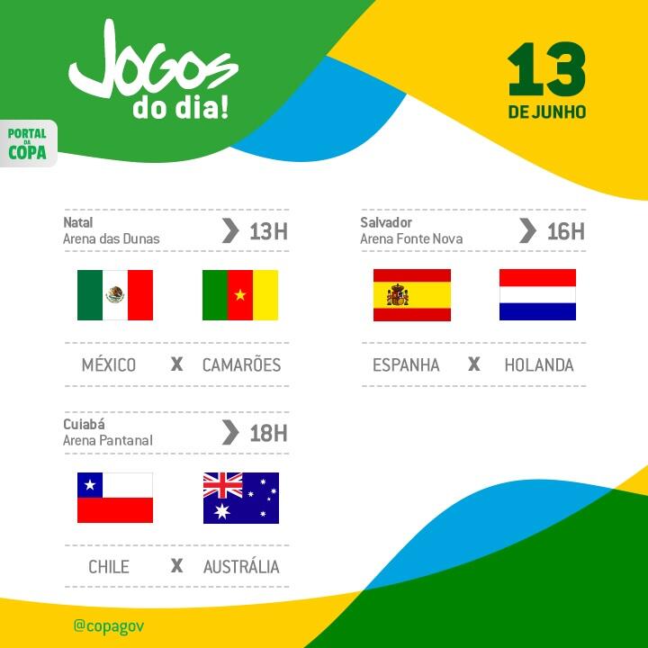 COPA DO MUNDO 2014 - JOGOS DESTA SEXTA-FEIRA 13/06/2014: